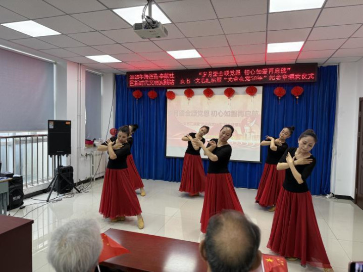 津滨海讯(记者张爱萌通讯员郝思佳摄影报道)为热烈庆祝中国共产党成立104周年,传承红色基因,凝聚奋进伟力,近日,海滨街道奉献社区开展了“岁月鎏金颂党恩初心如磐再启航”庆“七一”文艺汇演暨“光荣在党50年”纪念章颁发仪式。党员群众欢聚一堂,活动通过精彩纷呈的文艺汇演、庄重肃穆的纪念章颁发仪式,向党献上最真挚的祝福。